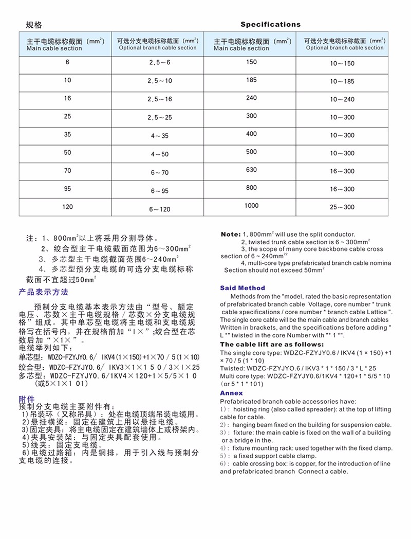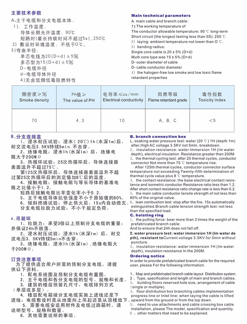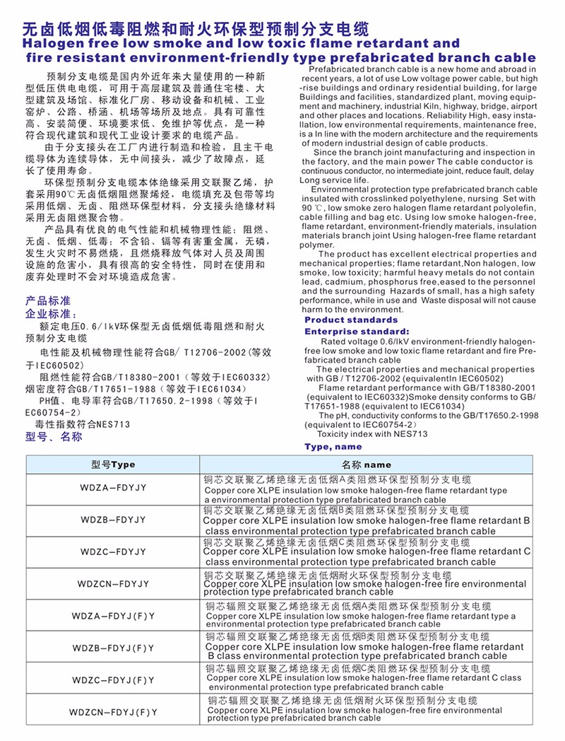 無鹵低煙低毒阻燃和耐火環(huán)保型預(yù)制分支電纜